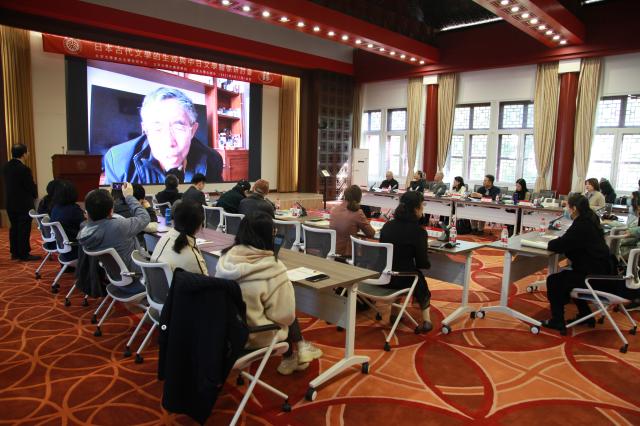 严绍璗教授曾任北京大学比较文学研究所所长、北京大学东方文学研究中心学术委员会主任。由于身体原因,严绍璗教授未能亲自与会,他以视频的方式表达了对大会的期待。严绍璗先生讲道,各位学者能够齐聚一堂,共同讨论东方语言文化中最为重要的学术领域之一日本语言文学,对促进该学科的教学和学术的发展,提高学界关注度有着重大的意义。此外,严绍璗先生还分享了自己与北大东方语言文学系的缘分,称赞其为我国东方语言文学研究与教学真正的发源地,希望能够借助北大东方文学研究中心这一平台开展更多同类的学术活动。